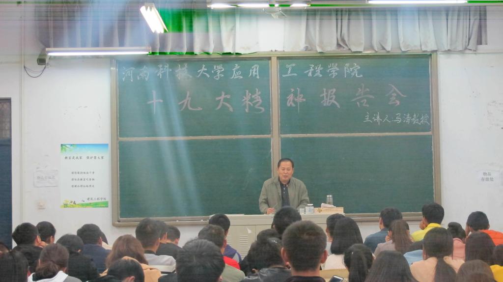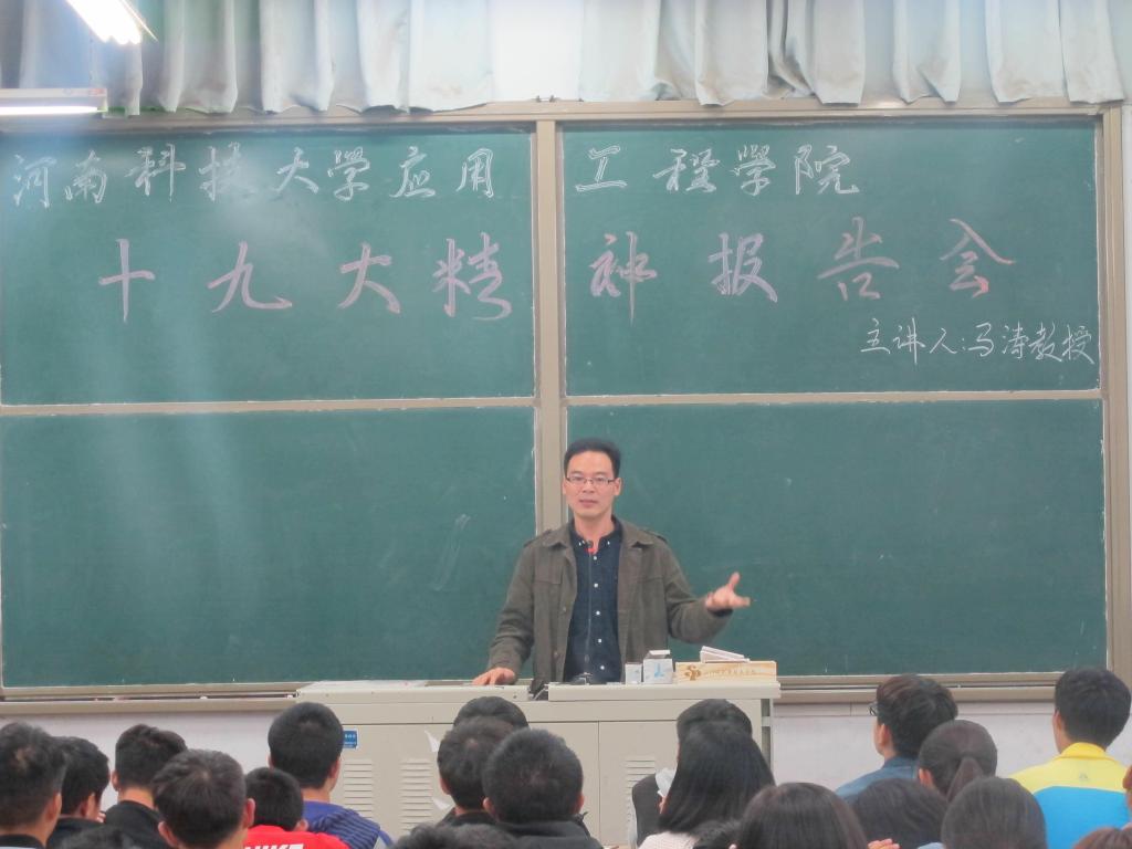 十九大是党在全面建成小康社会决胜阶段、中国特色社会主义进入新时代的关键时期,召开的里程碑意义重要会议。10月26日下午,东瀛竞技官方登录入口举办十九大精神报告会,由学院行政负责人马涛主讲,全体学生干部参加。报告在解读十九大报告的同时,紧密结合青年学子的学习和思想实际,对全体学生干部提出具体要求。报告会由学院学生科长王永志主持,部分辅导员也参加学习报告会。