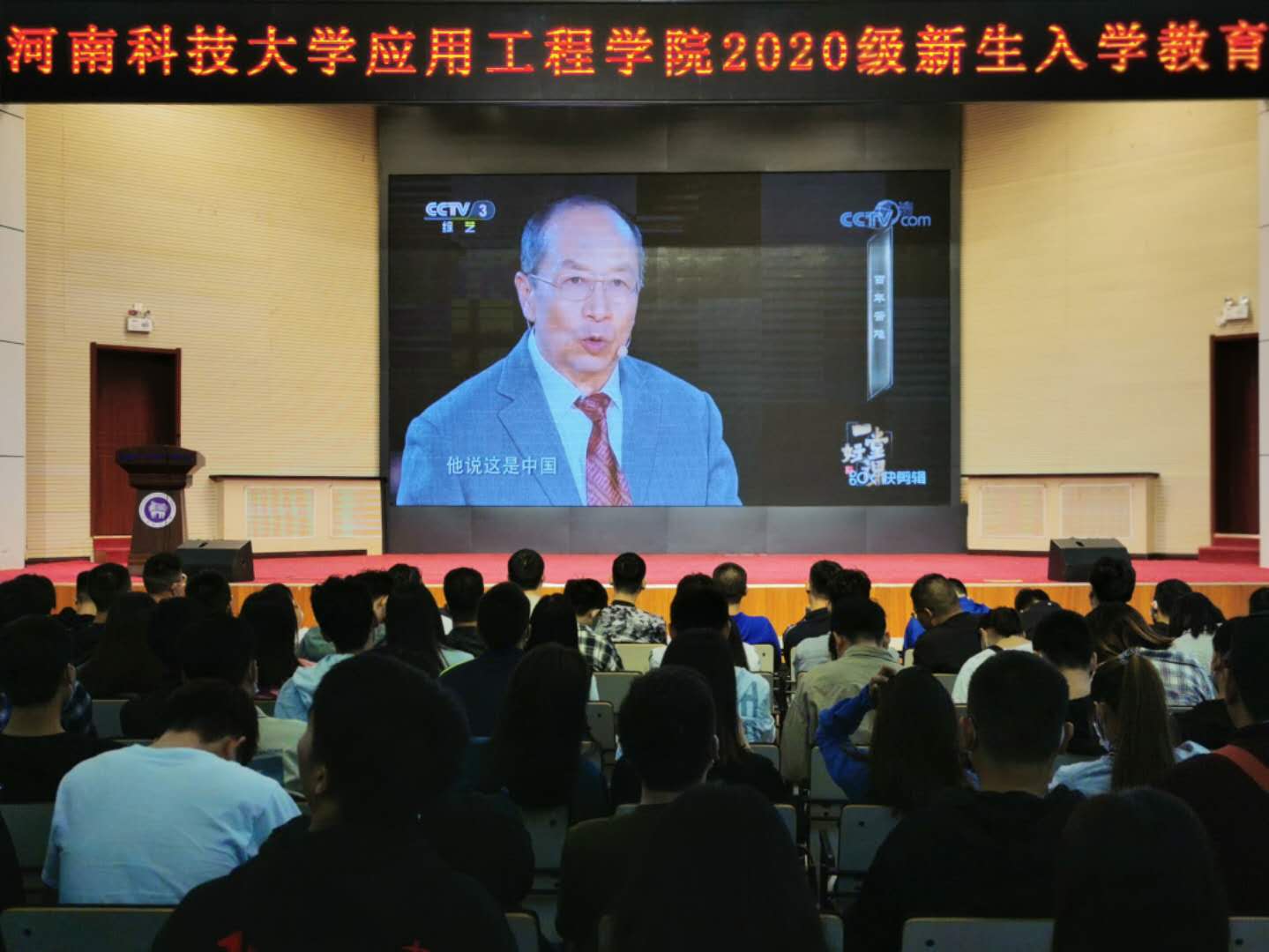 学院组织全体新生观看国防大学教授金一南教授主讲的《一堂好课》”思政课视频,为学生上了一堂生动的爱国主义和理想信念教育课,帮助年轻人扣好人生第一颗“扣子”。在节目的两个课时中,金一南教授讲述从“百年苦难”到“百年辉煌”,为观众解读何为爱国,又将如何爱国。当他讲到“我们能够忘记吗?忘记过去不但意味着背叛,更意味着将来可能还要重复”时学生听得热血沸腾,最后金一南教授表示就要像航天工程大学士官学校的先锋精神铭记的那样要“敢于胜利”,不仅是军人,而且是每一个中华民族一分子心中,今天都需要腾起这样的一团火焰。激励新时代的青年大学生,热爱祖国、热爱人民,树立远大理想,坚定信念,努力奋斗,让青春在党和人民最需要的地方绽放绚丽之花。