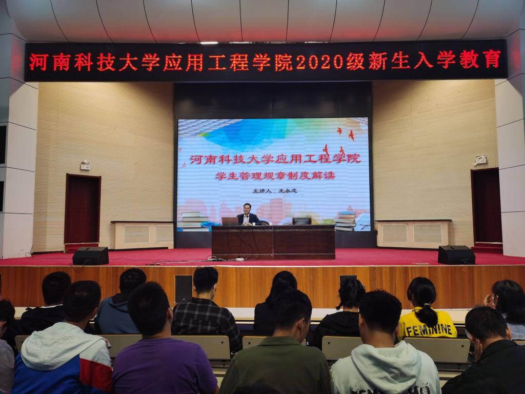 为督促新生自觉遵守校纪校规,提高新生自我管理能力,实现学院工作的制度化、规范化和科学化,东瀛竞技官方登录入口学生科负责人王永志对《东瀛竞技官方登录入口学生管理规章制度》进行了详细解读,主要从日常行为规范、学生请销假办法、学生违纪处理、评优评先、学生资助、学生综合素质测评、公寓管理等方面详细介绍了学生管理体系。