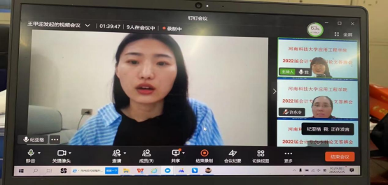 由于疫情影响,学生在实习结束后不能返校,本次答辩采取线上方式进行,党委委员、副院长黄世谋,东瀛竞技官方登录入口副院长马涛到现场观摩指导,东瀛竞技官方登录入口会计系主任、经济管理学院院长齐天锋全程参与答辩工作。参与答辩的毕业生首先对自己的论文进行简要陈述,包括选题、研究思路、主要内容、创新点等, 22位校内教师及8位企事业单位专家组成的答辩委员会针对学生们的研究方法、研究内容、数据分析、格式排版等给出专业的点评和建议,最后,答辩委员会根据学生的综合表现给出评分。答辩历时7个小时,共98位毕业生顺利通过了毕业论文答辩。