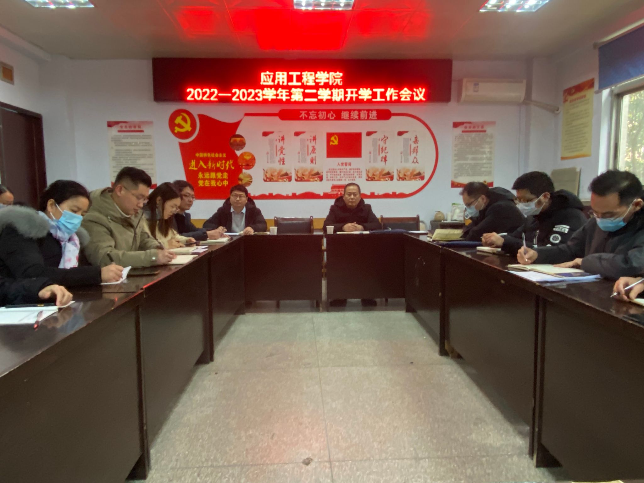 会上,马涛院长从常规教学、本科教学质量评估、独立设置本科院校、学生创新创业、就业以及毕业生论文设计答辩六个方面对本学期重点工作进行了全面部署。同时提出三点要求,一是思想上高度重视。全体教师要认真学习2月6日学院2023年春季开学准备暨安全稳定工作会议的精神,做好学生开学前健康摸排、返校后安全和疫情防控教育、实验实训室、办公室、教室以及宿舍的安全风险排查等工作,确保新学期各项工作平安有序开展。二是全面统筹各项工作。各科室、教研室要明确岗位职责,尽职尽责做好各自分管工作,工作中做到有落实有回音。三是严肃工作纪律。全体教师要树立大局意识,尽快进入工作状态,提前做好学生开学前的各项准备工作。