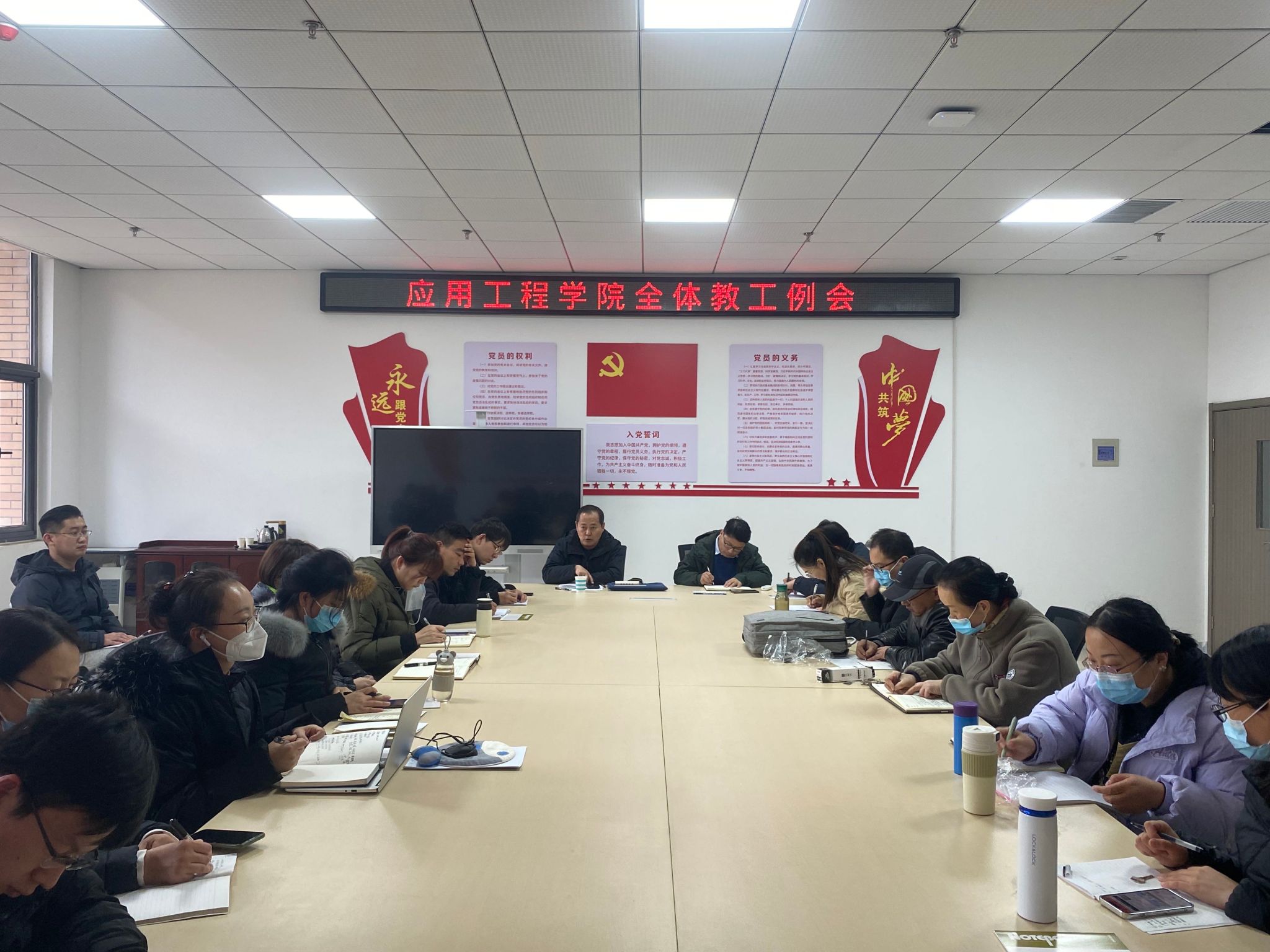 齐书记就规范常规教学、严肃工作纪律,加强学习强国学习提出了要求。各科室负责人分别就互联网创新创业大赛,就业工作、志愿服务活动、宣传工作、灵风湖校区教师休息室分配等进行了通报和下步安排。