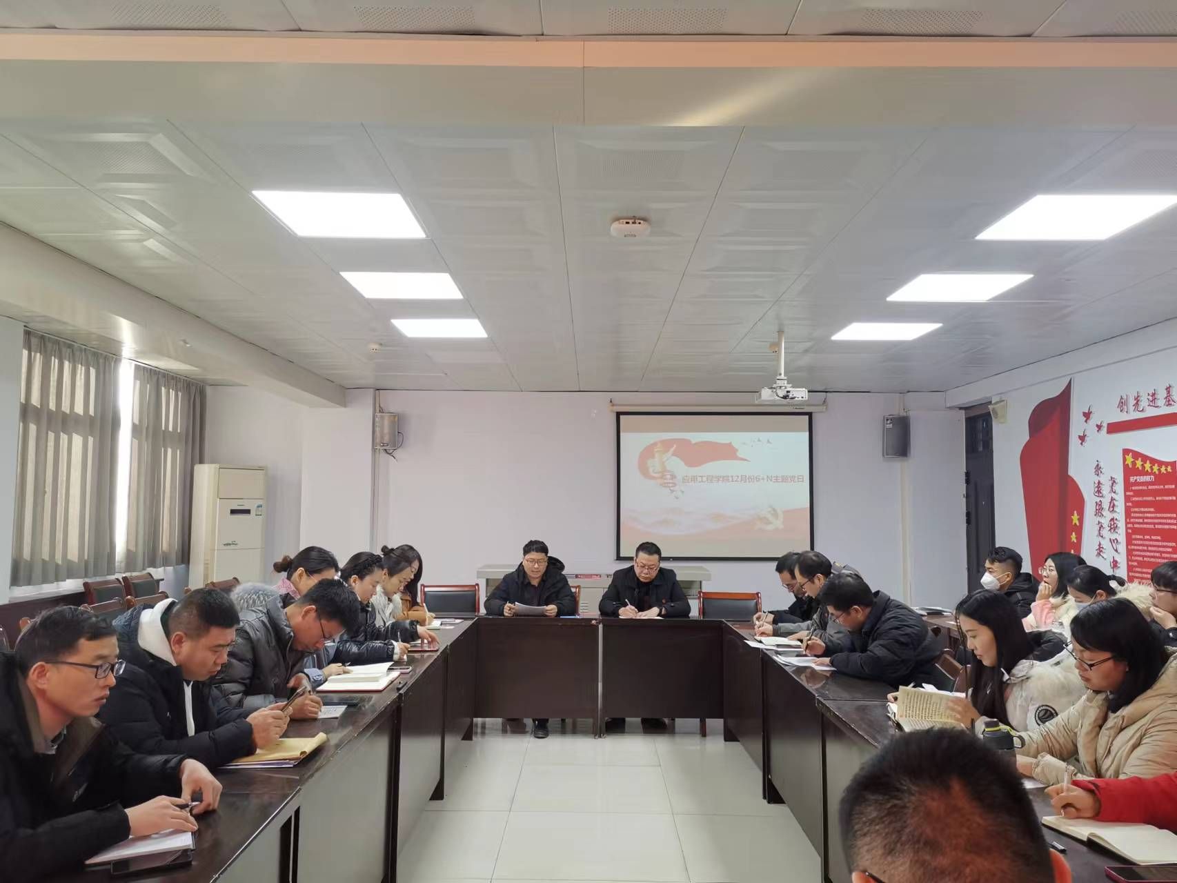 12月25日下午,东瀛竞技官方登录入口在天鹅湖校区10214会议室召开12月份6+N主题党日活动,全体党员参加此次会议,会议由党委副书记齐天锋主持。