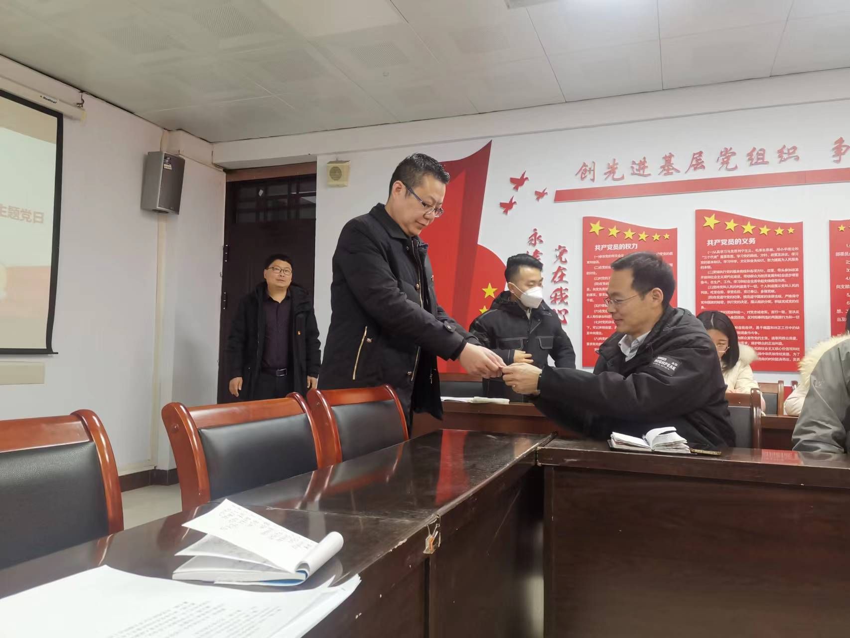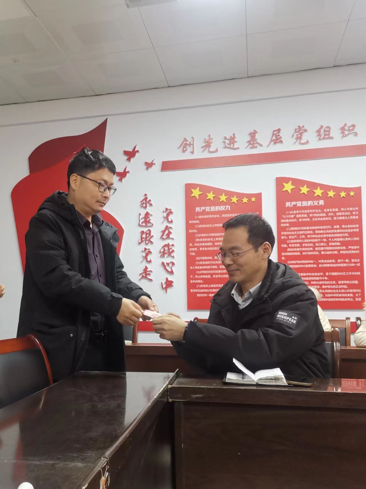 最后全体党员向组织委员王永志交纳12月份党费。