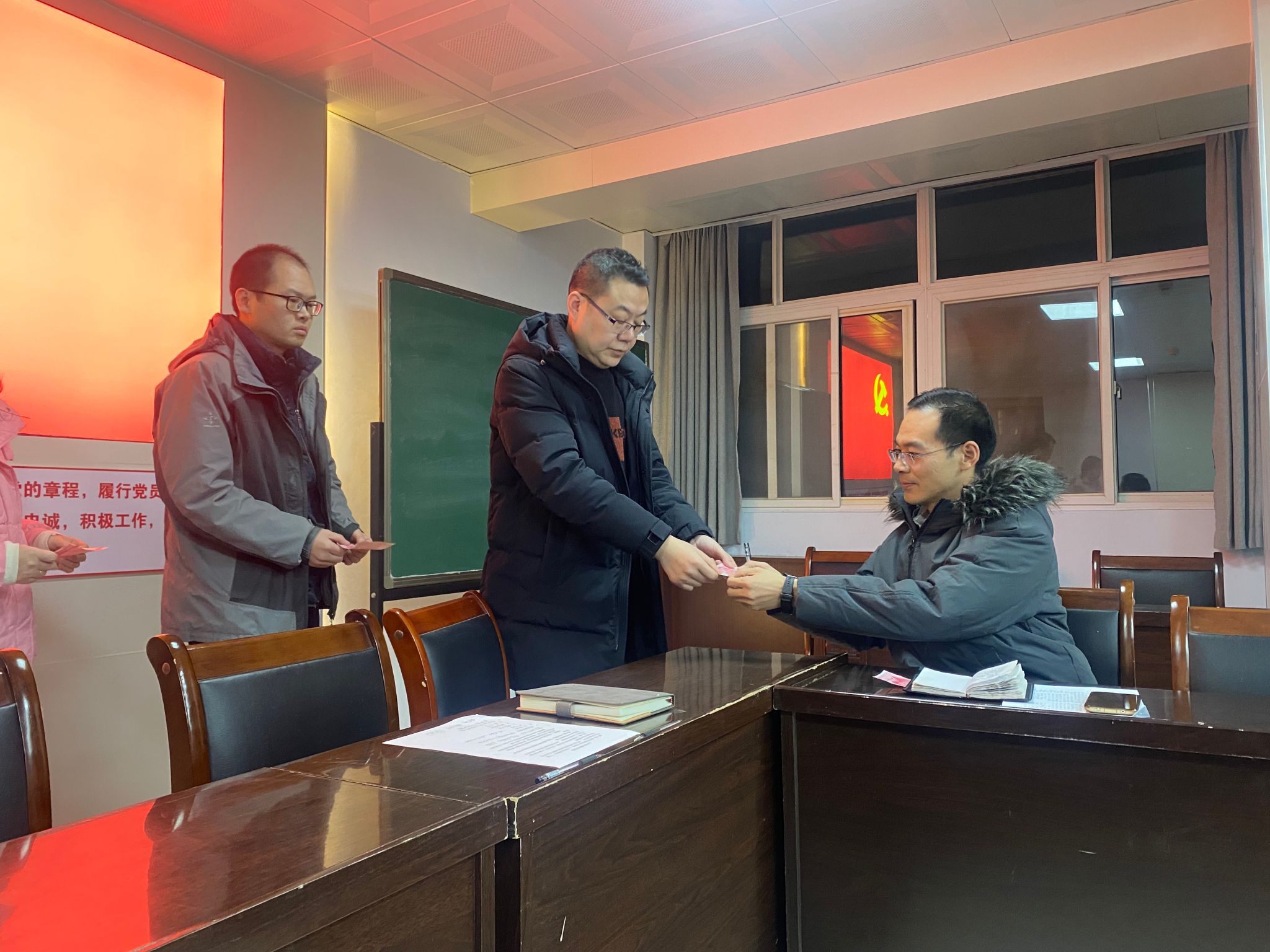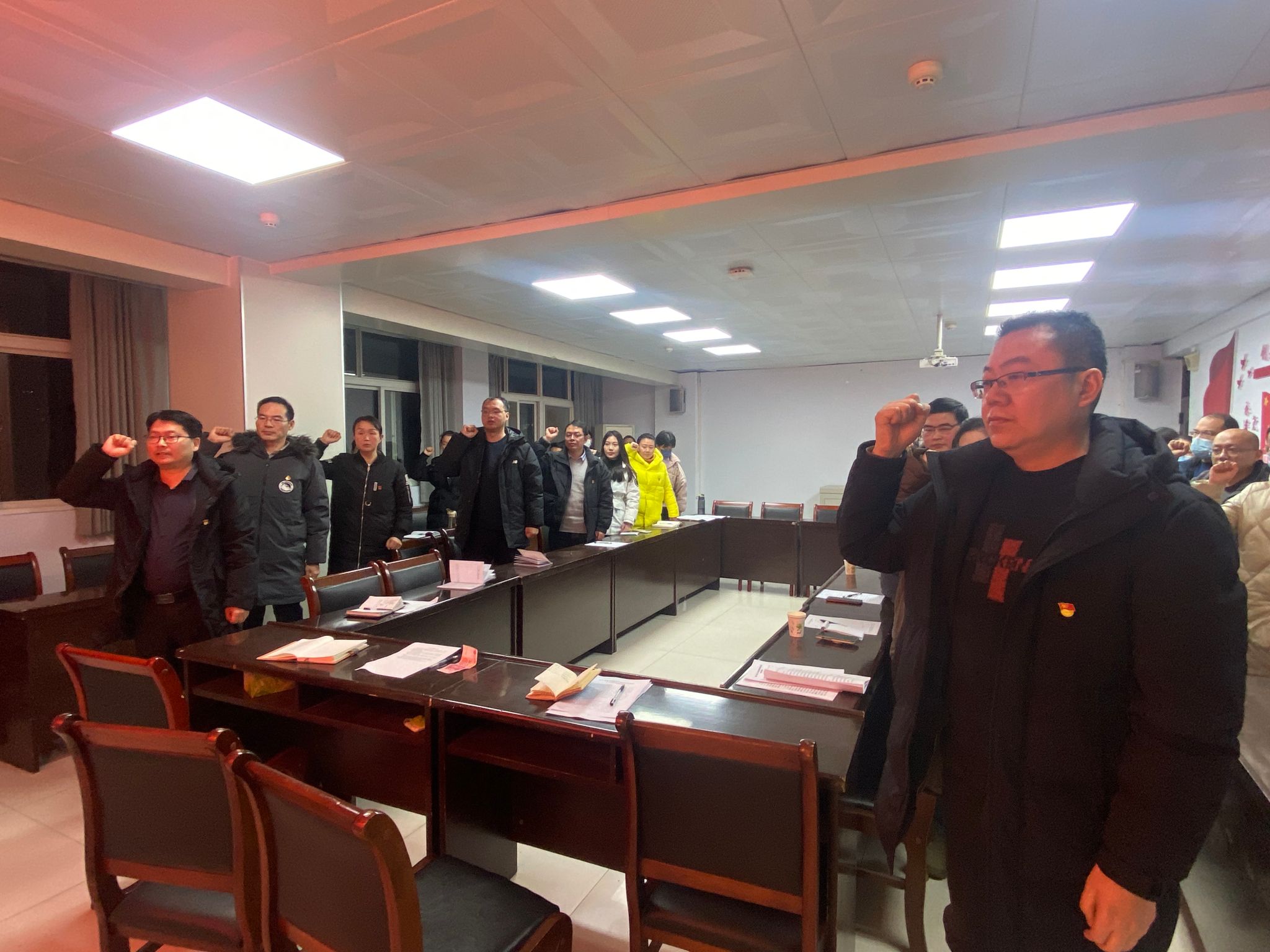 最后全体党员向组织委员王永志交纳1月份党费。