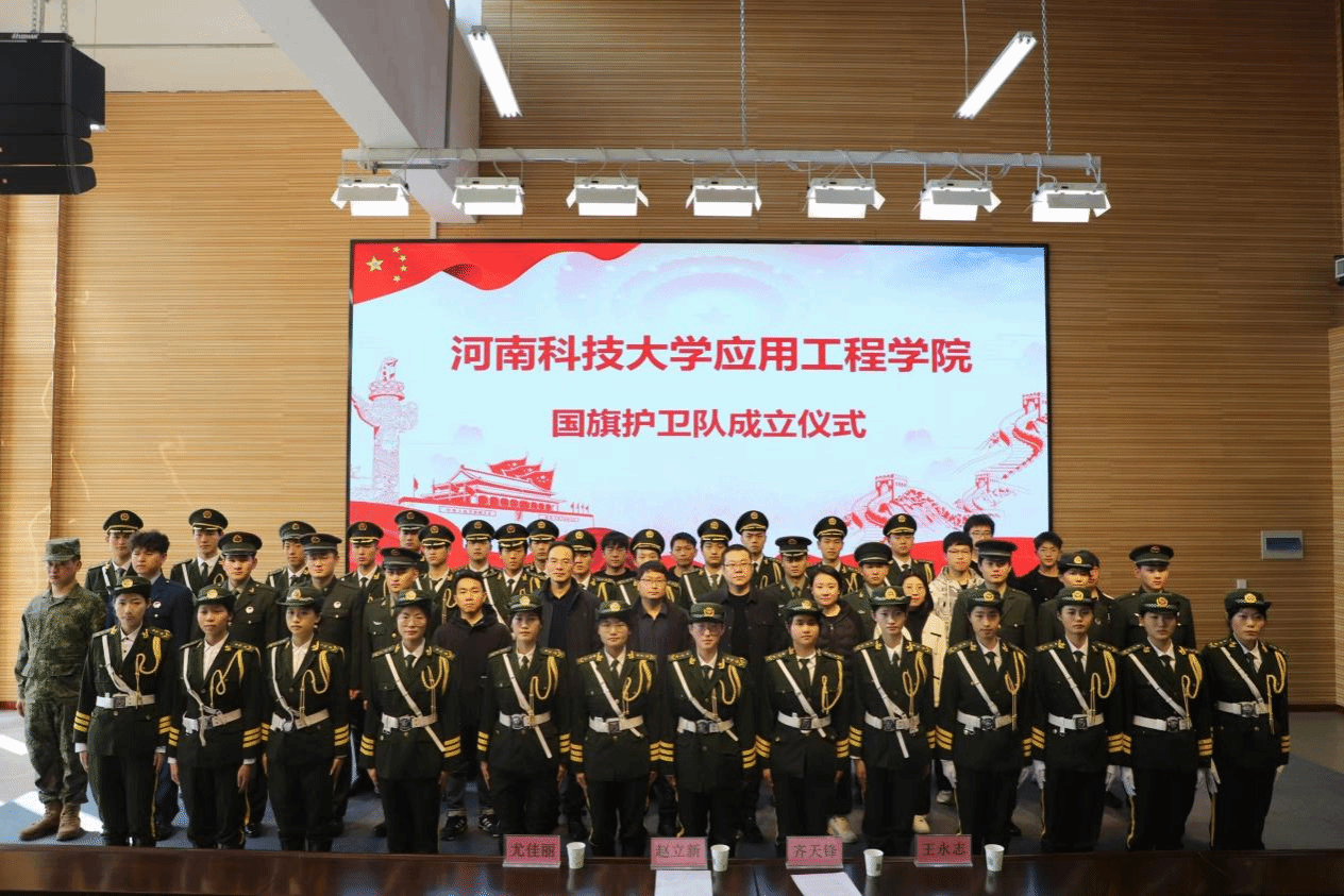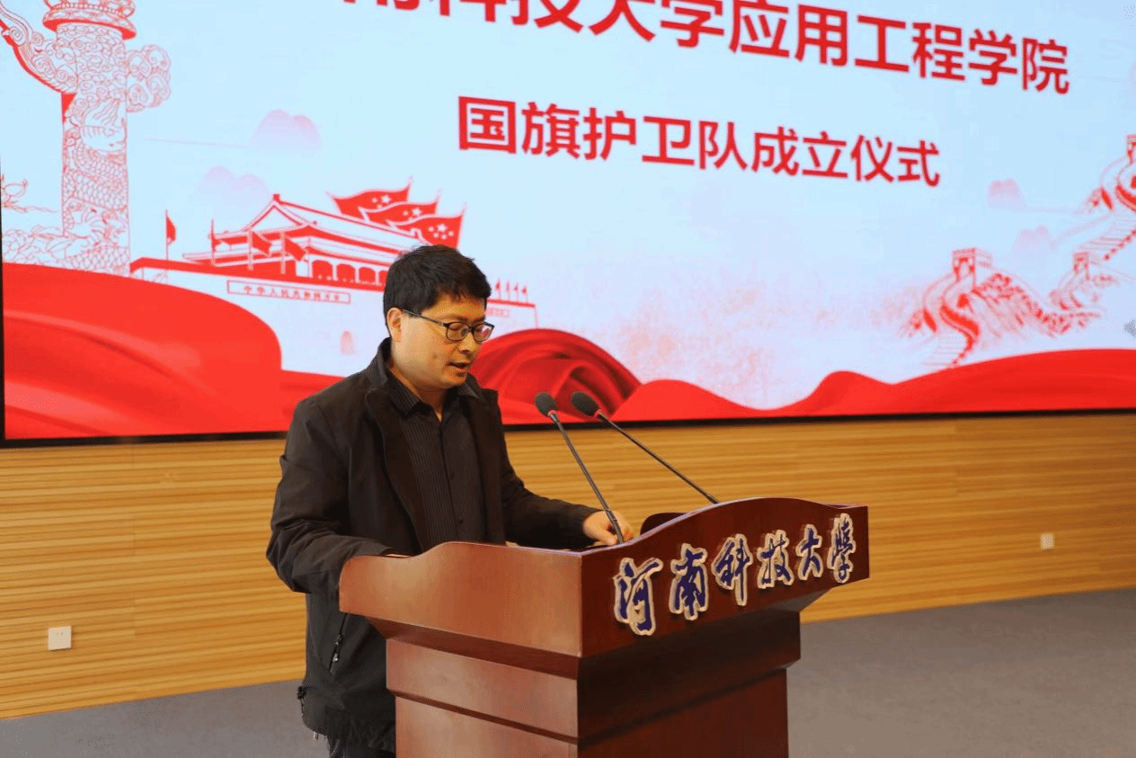 赵立新宣读国旗护卫队骨干名单、国旗护卫队教练员名单,并向全体人员授予证书,他表示,期望国旗护卫队队员们以国旗为荣,不断增强军事素质,培育优良作风,坚定维护国旗,继续牢记时代使命、彰显爱国情怀、传播积极能量、共谱青春华章,努力将国旗护卫队打造成学院爱国主义教育的重要载体,思想政治工作的优秀典型,校园文化建设的亮丽品牌。