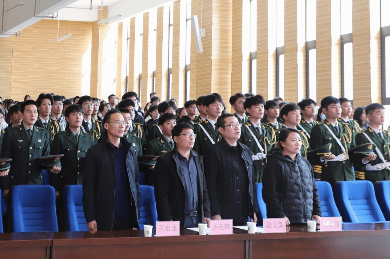 全体起立奏唱国歌后,齐天锋发表讲话。他对国旗护卫队队员及负责教师、教练员的付出给予肯定,向全体与会人员阐释了组建国旗护卫队的意义,并向国旗护卫队队员提出以下几点要求:一是要有明确的政治认识和政治站位,发扬不怕吃苦、勇于奋斗的时代精神,做到肩上有国旗,心中有信仰;二是要时刻秉承“心系国旗、服务同学、严于律己、奉献青春”的理念,护卫国旗,服务他人;三是要践行“爱国荣校”的理念,兼顾学业和训练,力求全方位发展,传承红色基因,投身中华民族伟大复兴的时代伟业。