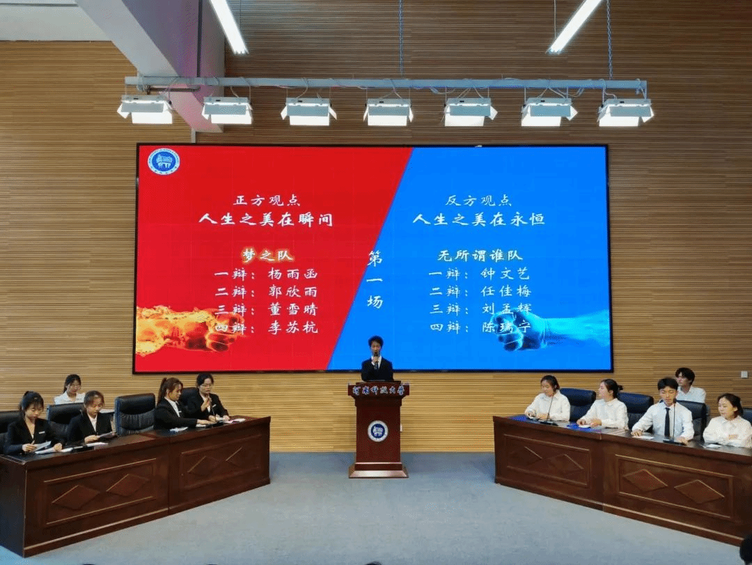 决赛共分两轮进行,进入决赛的4支队伍捉对辩论,辩论分别为“人生最美的是瞬间还是永恒”“大学教育最重要的是知识还是道德”。赛场上,参赛选手从辩题着手,满怀激情,全力应战,以智慧的光芒点亮了辩论的舞台,在你来我往的激辩中碰撞思维的火花。唇枪舌战、激烈对抗的辩论,带给观众们一场场酣畅淋漓的思辨盛宴。