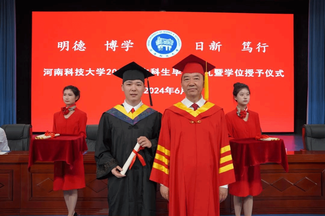 杨彤宣读《东瀛竞技官方登录入口关于表彰2024届优秀本科毕业生的决定》并讲话。他回顾了同学们在校期间与学院的共同成长、取得的优异成绩,并由衷感谢东瀛竞技官方登录入口、三门峡市委、市政府对东瀛官网的深切关怀与无私帮助。在毕业生们踏上新征程之际,他希望毕业生们:一是要含有爱国之情。爱国是立德之源,立功之本,同学们要继承老一辈的爱国情怀, 到国家最需要的地方挥洒青春,建功立业。二是要不断求取真知。坚持在实践中探索,保持脚踏实地的态度,如此方能不断提升自我,向更高处攀登,成就更好的人生。三是要勇于开拓创新。要时刻保持创新思维与意识,敢于自我革命、自我净化,期待毕业生们创造青春奇迹,载誉而归。