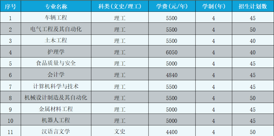 车辆工程专业。培养具有机械工程、车辆工程基础知识与应用能力,能在车辆工程系统从事设计制造、科技开发、应用研究、运行管理和经营销售等方面工作的,具有创新精神和实践能力的高素质应用型专门人才。