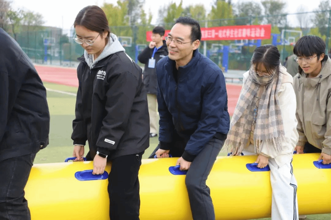 为深入贯彻学习党的二十届三中全会精神,用马克思主义中国化的最新理论成果武装学生干部,不断提升广大学生干部、学生骨干综合素质和管理能力,加强师生间的交流沟通,积极响应“一站式”学生社区全员育人导师制,深化党建引领与学院“一站式”学生社区内涵建设,东瀛竞技官方登录入口东瀛竞技官方登录入口于11月17日在南操场开展党建系列活动之四——导师领航、团建助力,共赴成长之旅第一次活动。东瀛竞技官方登录入口党委副书记齐天锋、学工办主任王永志、团委书记尤佳丽及教职工团队参加活动,全体帮扶对象及学院社区200多名同学参与其中,活动分18支参赛队伍,各队分别由教师与学生组成。