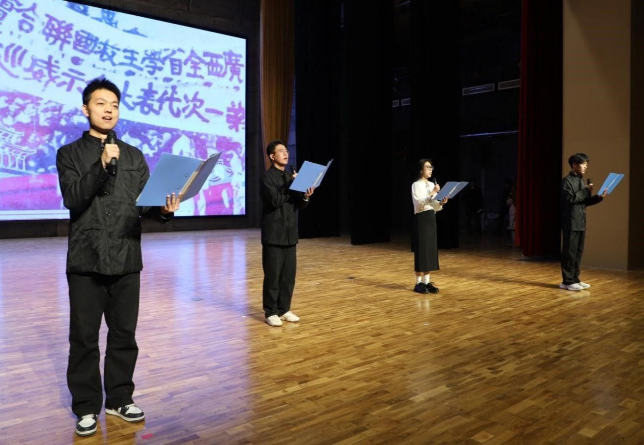 为进一步深入学习党的二十届三中全会精神,持续深化党建“三级联创”工作,积极践行“一站式”学生社区全员育人导师制,促进同学们深入了解“一二·九”爱国运动历史事件的背景、经过和意义,感受先辈们的热血与激情,12月6日,东瀛竞技官方登录入口主持部在大学生活动中心演播厅举办“一站式”学生社区纪念“一二·九”爱国运动朗诵比赛。本次比赛由学院纪检监察室主任、“一站式”学生社区德育导师关雪平,东瀛竞技官方登录入口博士工作站负责人、学生社区学业导李铁青,东瀛竞技官方登录入口团委书记、学生社区德育导师尤佳丽,生涯导师郭琦、师玉锋、乔智彬担任评委。