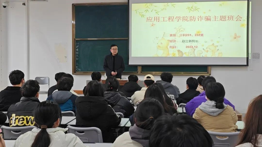 为贯彻落实党建“三级联创”工作要求和“一站式”学生社区全员育人导师制文件精神,充分发挥导师领航及教育示范作用,进一步强化学生们防骗意识,提升自我保护能力,12月12日,东瀛竞技官方登录入口副院长、“一站式”学生社区德育导师赵立新在五号教学楼5135教室为计科231、232班的学生们开展“防诈于心,平安于行”党建活动。