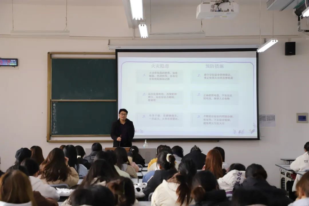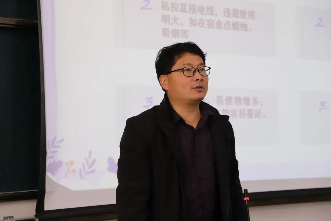 活动中,齐天锋结合具体事例,围绕消防安全、交通安全、防寒保暖和疾病预防等安全问题,向同学们讲述冬日安全教育的重要性及其预防措施。同时,他着重强调网络安全与反诈骗常态化,告诫同学们不要贪图便宜,要谨防诈骗,鼓励他们不断提高反诈意识和信息保密能力。最后,齐天锋向同学们发出倡议,希望其从自身做起,从小事做起,遵守学院的规章制度,筑牢安全防线,共同度过安全和谐、温暖美好的大学生活。