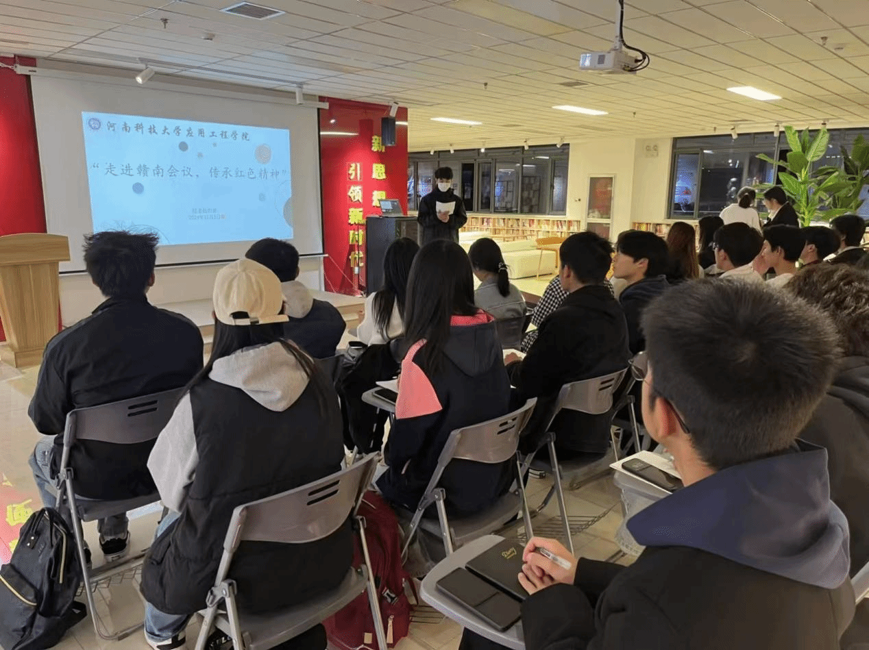 首先,电气231班的原金康同学对赣南会议的历史背景和重要意义进行了简单介绍,指出它在党的历史进程中留下了极为浓重的一笔,充分展现出革命先辈们为追求真理、坚持信仰而无私奉献的伟大精神,使同学们对赣南会议有了一个初步认识。