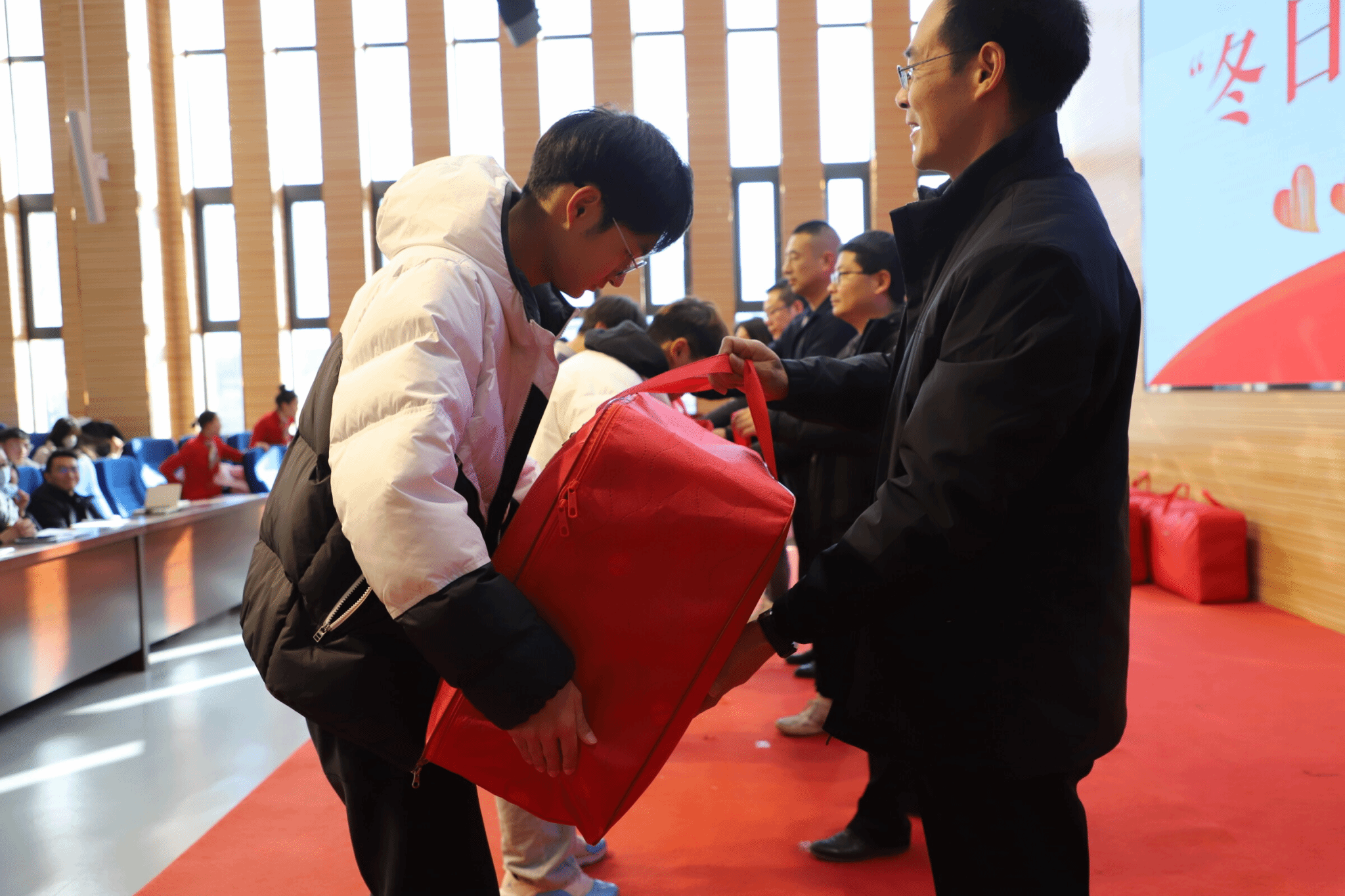 活动伊始,由张老师宣读受助学生名单,接着由各领导老师为受助学生分发棉被等暖冬物资,并问候了同学们在日常生活中遇见的问题,话里行间透露着对同学们的关心与照顾。最后由齐书记为学生们作勉励讲话。