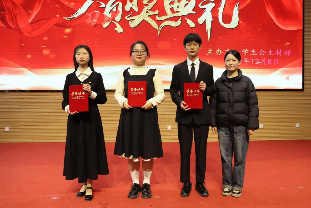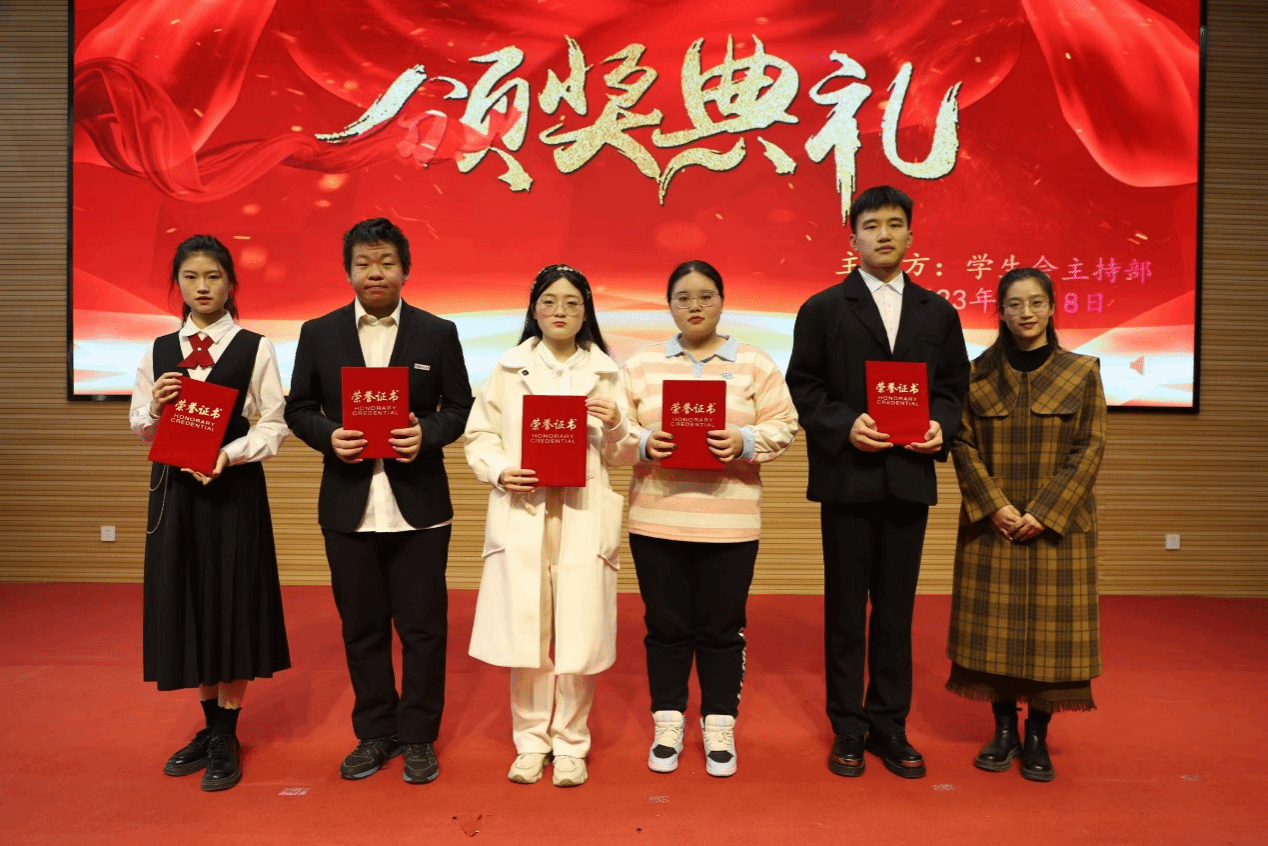 演讲结束后,马婷老师从演讲主题、语言表达、仪表形象和舞台展现等方面对参赛学生的表现进行总结。接着,评委们根据得分为获奖学生颁发证书并合影留念,参赛学生们互相交流学习并分享感受。最后,学生会主持部成员上台带领所有参与人员宣誓,至此比赛圆满结束。