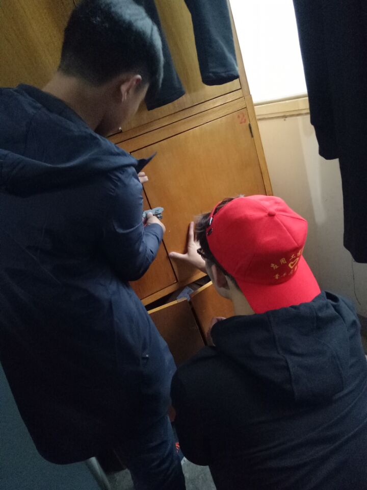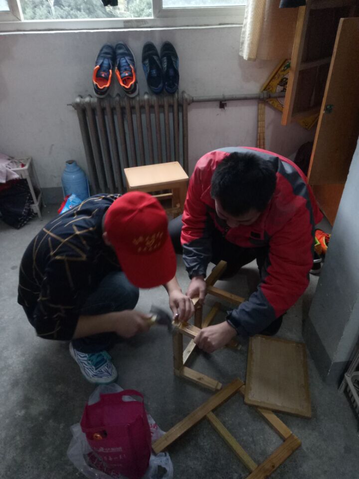 活动中,该院师生党员和入党积极分子们,头戴着志愿者活动的红色帽子,分成两队人马,按照预定的路线,分组向新东大门和宿舍推进。在新东大门地下涵洞附近,大家拿着卫生工具,通过沿路捡拾垃圾,清理绿化带里的杂物、去除小广告等形式,认真打扫涵洞周边的卫生,进行环境大清扫。另一队人马手持铁锤、钉子等修理工具,穿梭在十号楼与七号楼之间,深入到每个宿舍,对破损的凳子、柜子逐个认真修理,以热情认真的态度,共修理凳子34张,安装晾衣绳10根,维修柜子6个。