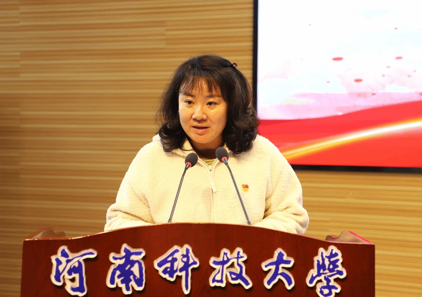 最后,尤佳丽进行总结发言。她对齐天锋的培训宣讲表示感谢,希望学生干部以本次大会为契机,把培训内容内化于心、外化于行,以更饱满的热情、更坚定的信念、更务实的作风投入到日常工作学习中去,共同推动学院的各项事业蓬勃发展。