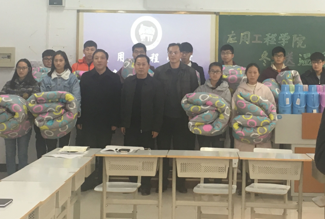 校学生处副处长曲扬,东瀛竞技官方登录入口院长马涛,党总支副书记郭映波,学生科负责人王永志及全体辅导员参加活动,向11位受助学生赠送棉被等御寒物品。在之后举办的受助学生座谈会上,领导们向受助学生表达亲切的关怀和诚挚的慰问,并向受助学生提出希望,希望他们心怀感恩之情、自强不息、努力学习,通过不懈努力改变家庭经济困难状况,并将这份爱心与温暖传递下去。